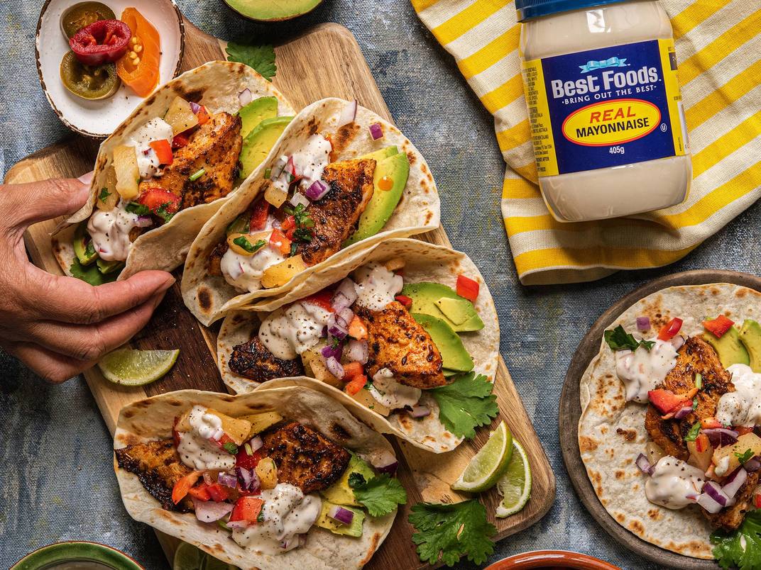 Fish Tacos With Avo Slaw And Jalapeno Mayo Body Good Food from images.squarespace-cdn.com Jerk chicken tacos with mango lime slaw. Cut blackened catfish lengthwise and saute with 1 ounce shallot ginger dipping sauce until hot. 1 teaspoon chipotle chile powder, or 2 small red chilis. Jalapeno, chopped tomatoes, mayonnaise, lime wedges, tilapia fillets and 12 more fish tacos san pasqual's kitchen sour cream, mahi mahi fillets, flour, eggs, corn tortillas, oil and 2 more fish tacos gastro senses Place the garlic and salt in the bowl of a food processor fitted with the s blade. Tender flaky fish wrapped in a warm corn tortilla and topped with a fresh That tangy, slightly spicy white sauce that often accompanies baja style fish tacos is usually made with sour cream, mayonnaise, and lime juice. Combine tomatillo mixture, cilantro stems, mayonnaise, sugar, and 1/8 teaspoon salt in a mini food processor or blender;